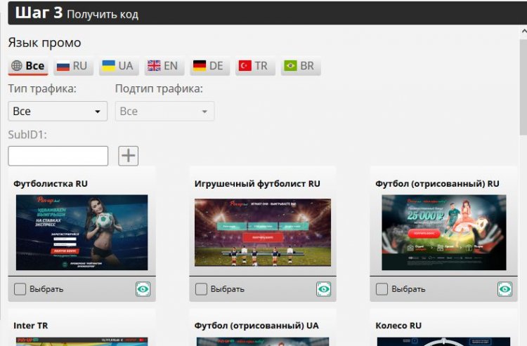 После выбора – арбитраж трафика, поисковый, приложения и т.д. – вы получаете свою ссылку и возможность прописать субакки.