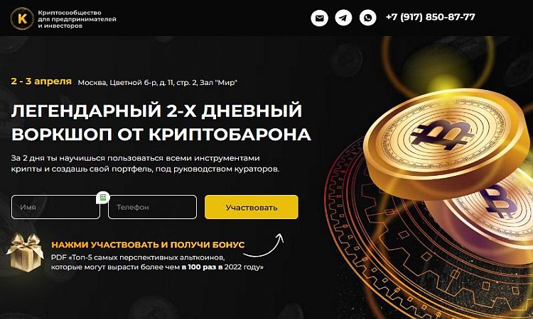 Данный воркшоп от Криптобарона пройдет в Москве в период 2-3 апреля на Цветном бульваре д. 11 строение 2 в зале «Мир».