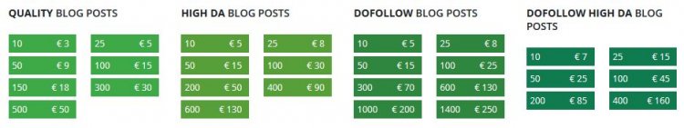 В описании можете прочитать, что входит в комплект, и какие условия предлагает биржа. Что касается блог-постов, то они идут миксованные dofollow/nofollow согласно всем рекомендациям и здравому смыслу, чтобы имитировать естественное происхождение ссылок.