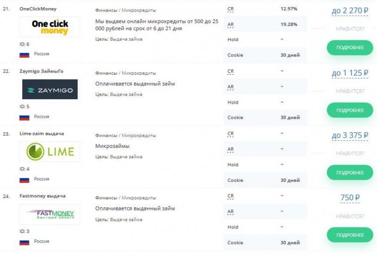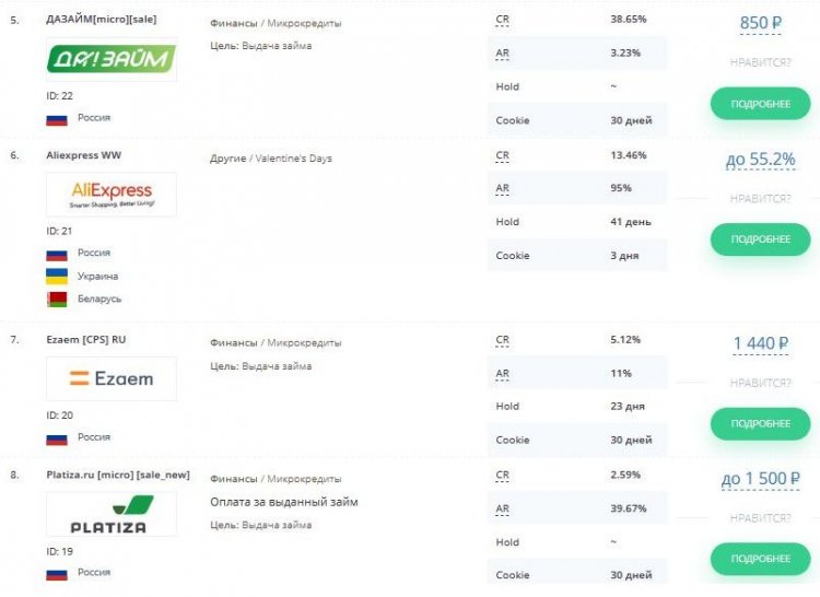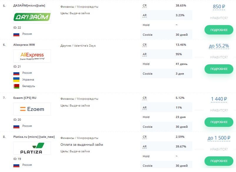 Поскольку принцип работы любых CPA сетей заключается в постоянной работе, поиске и подключении новых рекламодателей, но и на момент прочтения Вами обзора таких предложений, скорее всего, будет больше. Поэтому сейчас я даю общее представление.