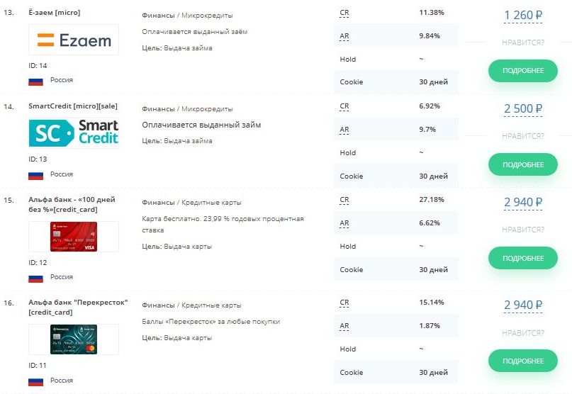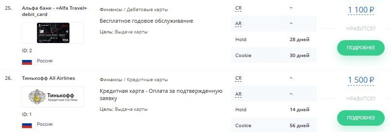 Сейчас их в списке доступных относительно немного, и есть возможность и смысл опубликовать все офферы банковской партнерской программы Adbobr.