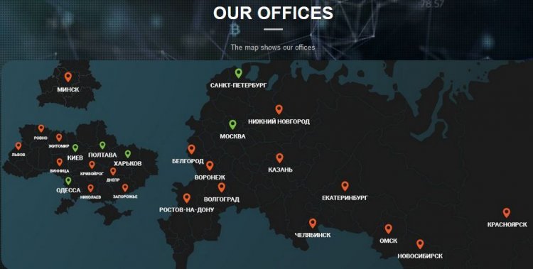 Сейчас офисы находятся в следующих городах и странах – отмечены зеленым.
