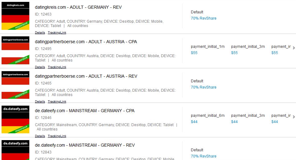 По адалт и мейнстрим датингу для всех этих трех стран я советую смотреть партнерку прямого рекламодателя со своим инхаусным продуктом.