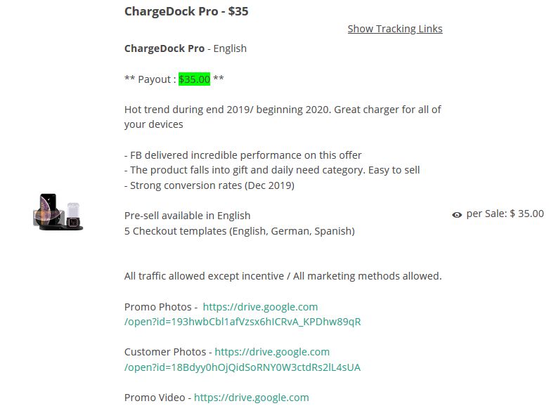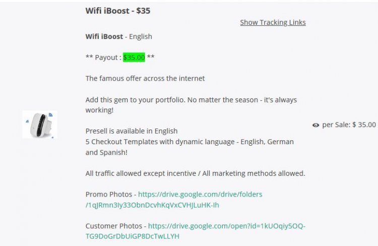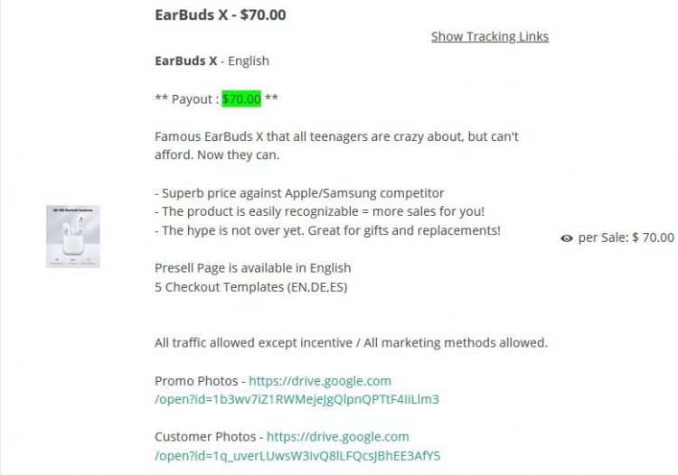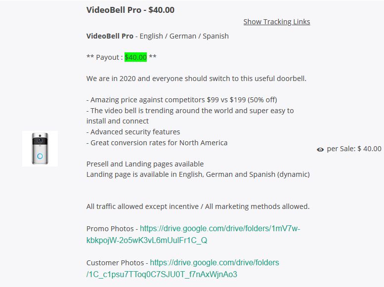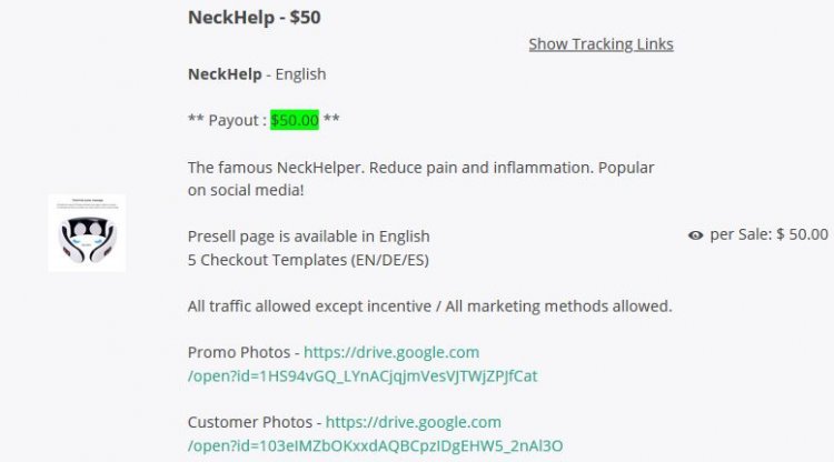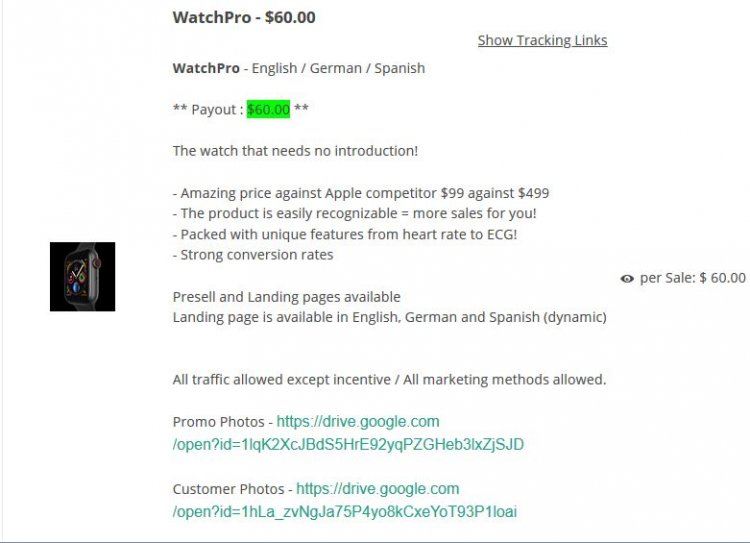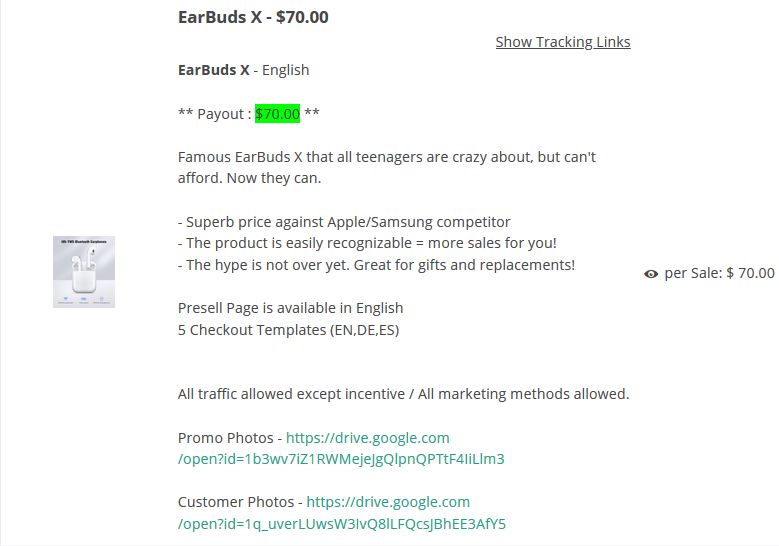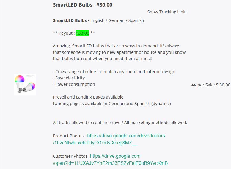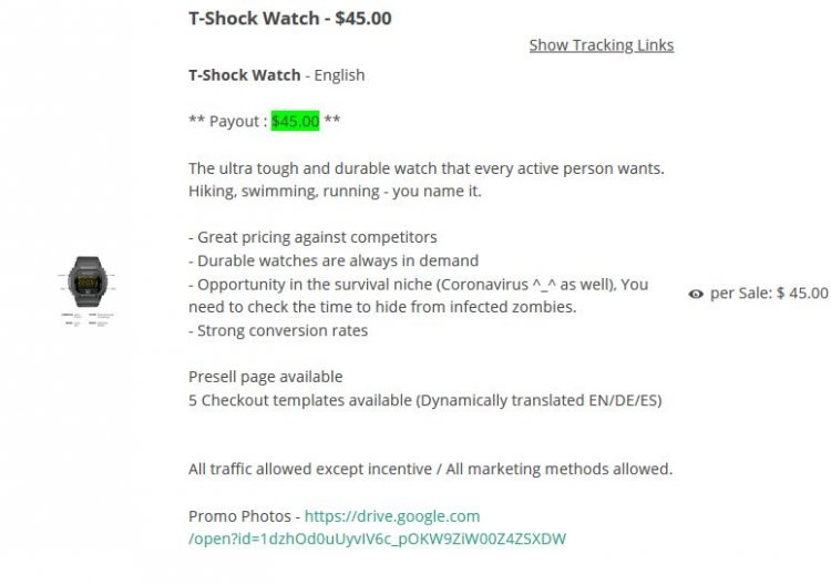 Рядом с названием продукта в партнерской программе есть ссылка «Show Tracking Links».