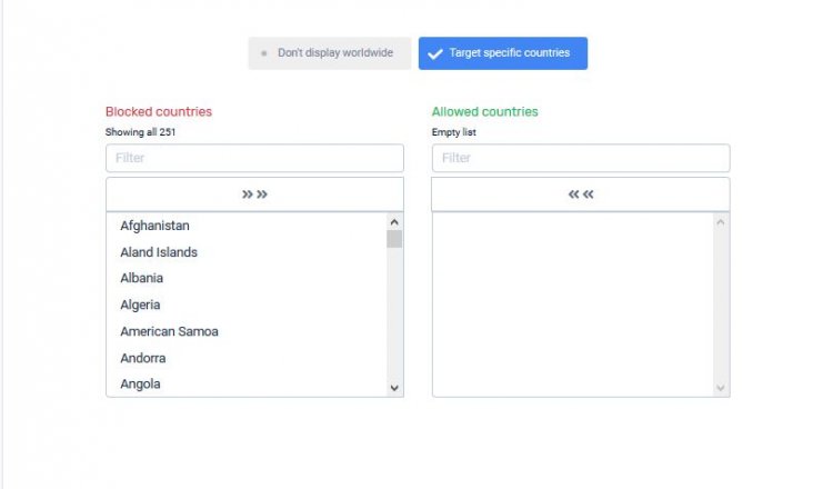 Доступные следующие виды таргетингов: