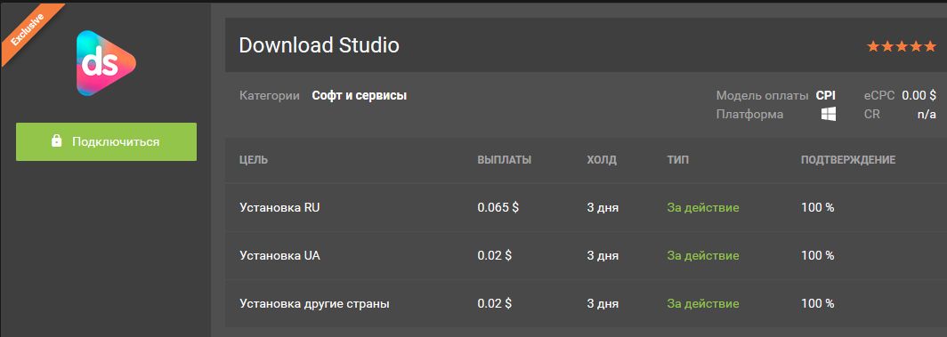 Есть в системе и другие офферы, но их очень мало. На эксклюзиве есть вот такой.