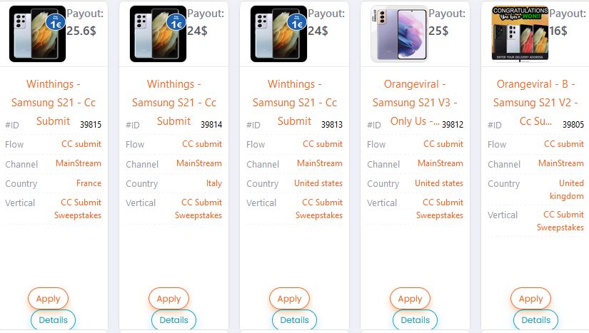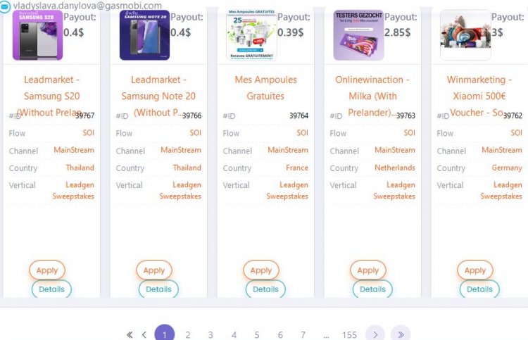 Приведу примеры предложений зарубежной СРА сети Gasmobi по каждой из вертикалей.
