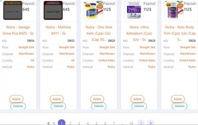 • Nutra/Health & Beauty – Straight Sale, но есть и офферы CC-submit, но в нише Keto & Beauty.