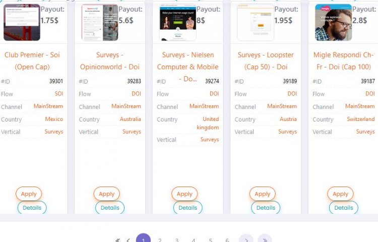 • LeadGen (здесь от CC-submit до SOI Sweepstakes, Astro, Fortel, Surveys, Finance Loans, Finance Banks, Insurance). Модели оплаты, в основном, CPL.
