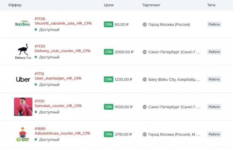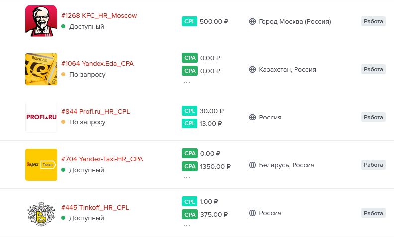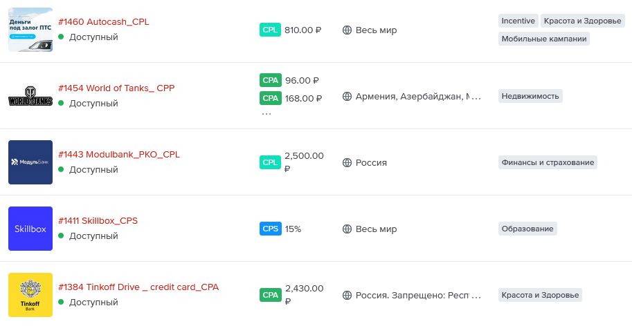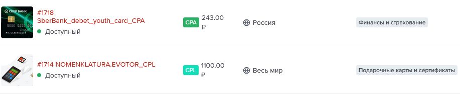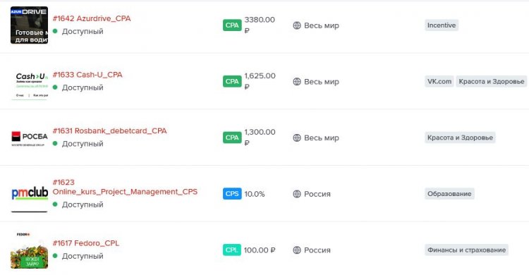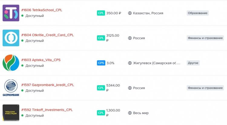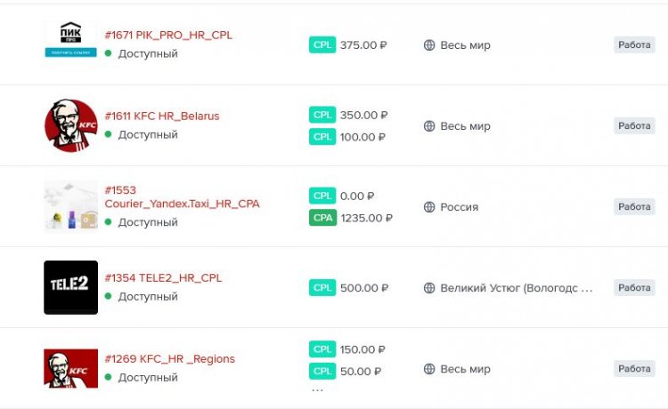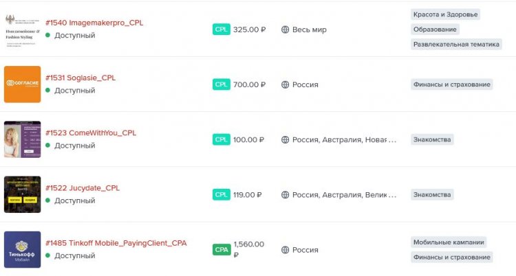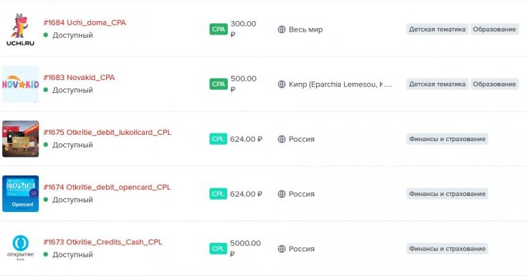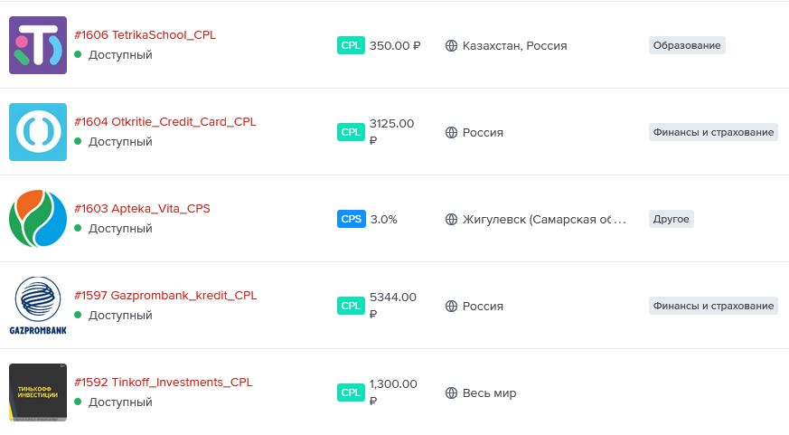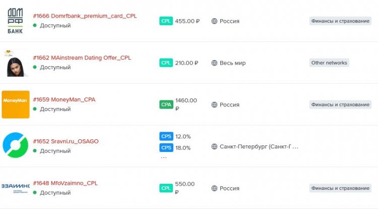А также по другим вертикалям СРА сети, которые есть на момент публикации.