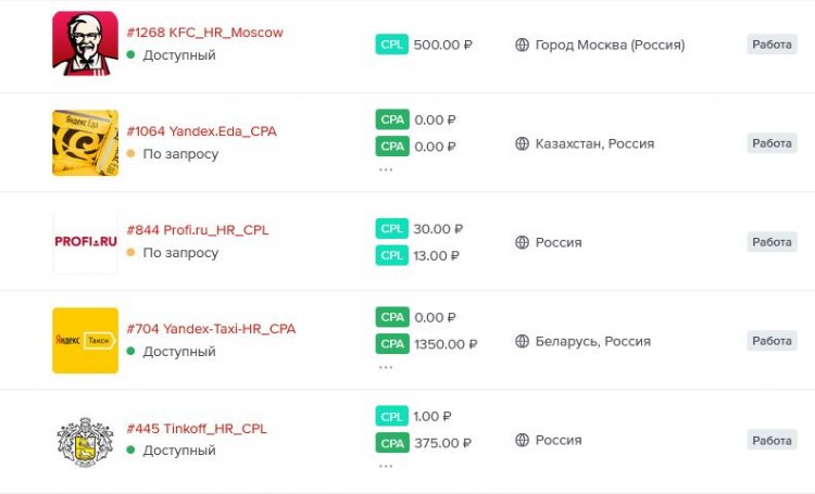 В CPAEX платят 1 раз в месяц, поэтому ее я советую использовать как раз в качестве источника офферов по вакансиям, поиску работы и трудоустройству.
