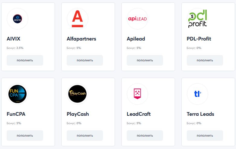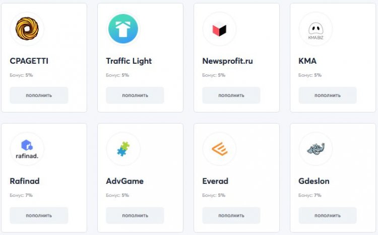 Есть еще фишка: можете вывести деньги из партнерок и перекинуть их сразу на баланс выбранной рекламной сети и не просто без комиссий, но еще и с бонусом сверху.