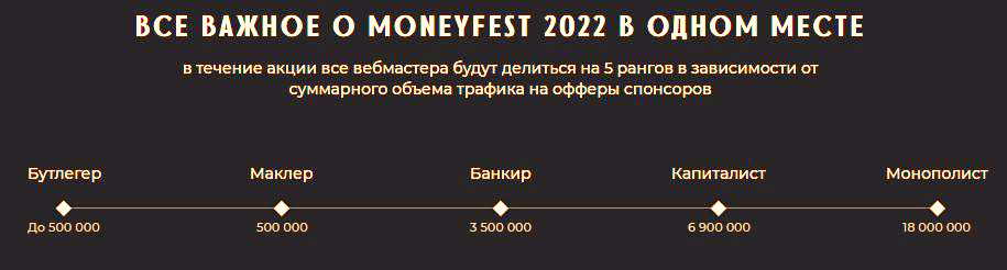 Финансовая СРА сеть LEADS запускает долгосрочную акцию Moneyfest, которая продлится до 30 ноября 2022 года. Каждый рекламодатель, участвующий в акции, предоставляет собственные призы.