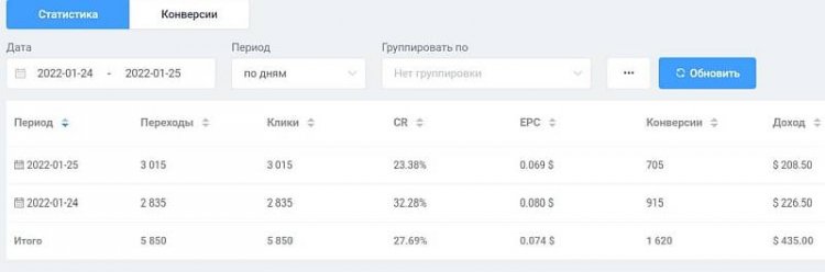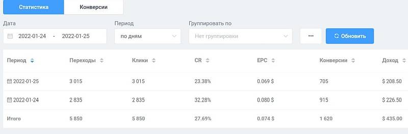 Стата по заработку в дейтинг партнерке LovePartners.