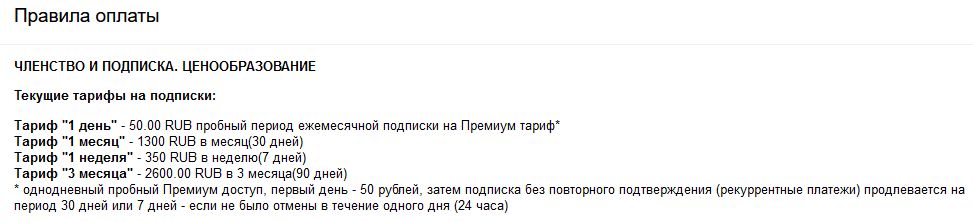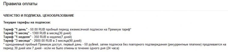 Условия для пользователей при оплате доступа указаны на скрине.