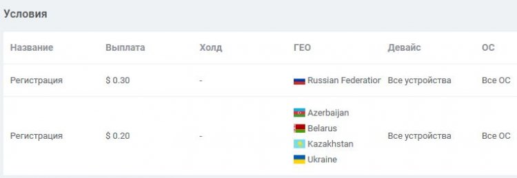 По адалту и мейнстриму сказал чуть выше. А вот стандартные условия оплаты для вебмастеров по разным гео.