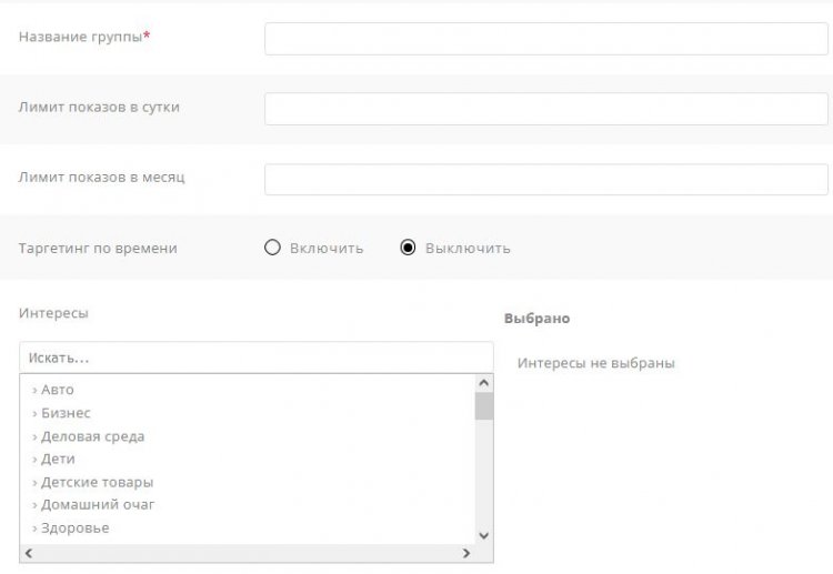4. Временной таргетинг - шаг 15 минут, можно указать только в рамках суток. Пример с 9-45 до 18-00. Неверно с 20-45 до 5-00.