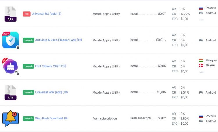 Download (даунлоуд) партнерки стандартно работают по модели «оплата за инсталлы», при этом, если раньше были множественные офферы по играм и софту от прямых рекламодателей в CPA сетях, то сейчас файлы отдают в .APK с вшитой рекламой.