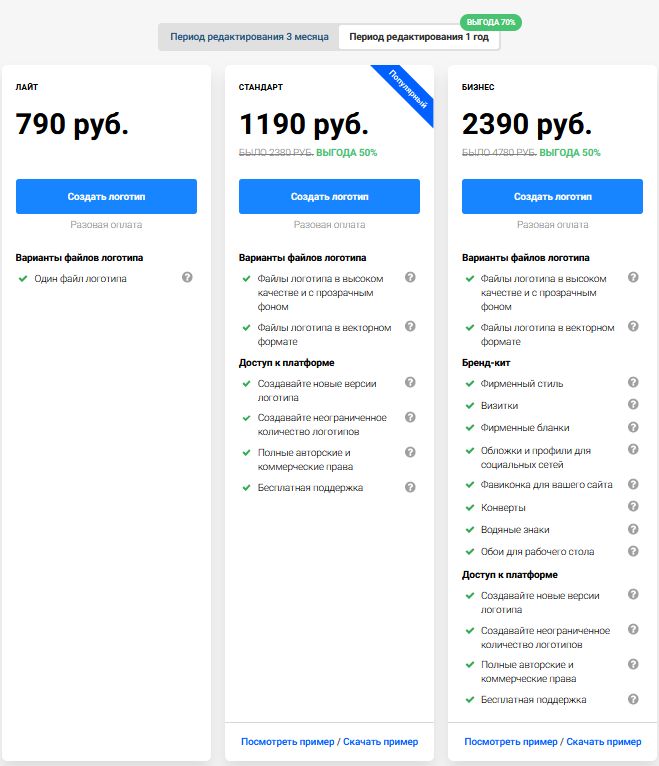 Вы можете создать бесплатно бесконечное количество вариантов логотипа. Ни один дизайнер не будет делать бесплатно варианты логотипа, а в этом сервисе у вас такая возможность есть. Вы платите только за файлы конкретного логотипа.