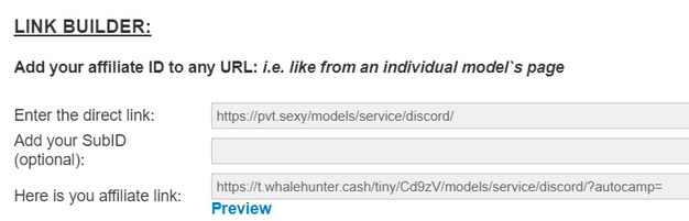 После применения фильтра Discord войдите в свою учетную запись WhaleHunter и создайте свою отслеживаемую ссылку.