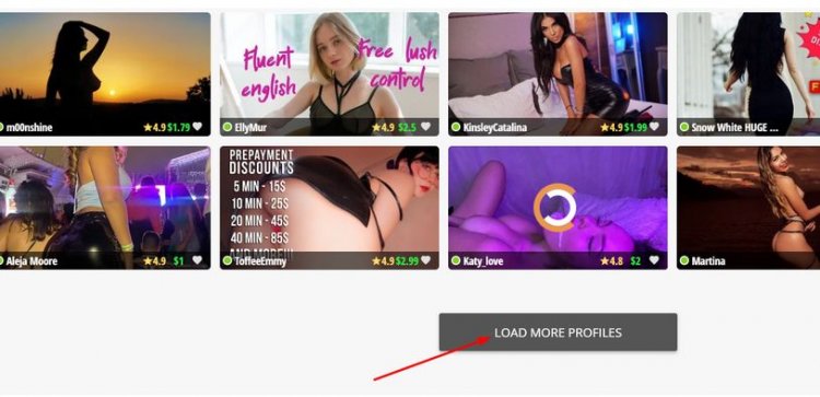 1. Нажмите "Загрузить больше профилей" на сайте Pvt Sexy (в нижней части страницы).