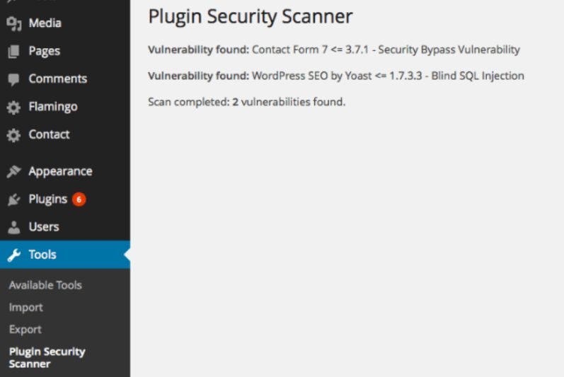 Плагин подключен к базе данных WPScan, бесплатной (для некоммерческого использования) базе данных, управляемой экспертами по безопасности, которая регистрирует все потенциальные риски WordPress.