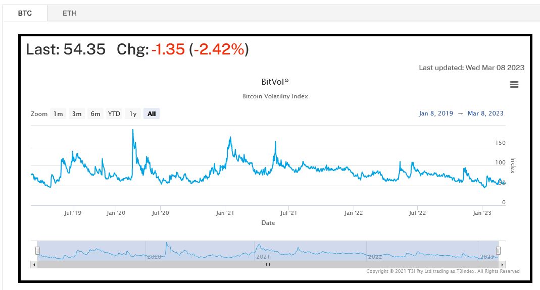 Индекс BitVol и индекс EthVol измеряют ожидаемую 30-дневную волатильность биткоина и Ethereum соответственно. Они оба получены на основе исторических данных по их торгуемым опционам.