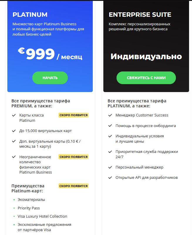 • Enterprise Suite — количество виртуальных карт устанавливается индивидуально, в зависимости от потребностей вашего бизнеса.