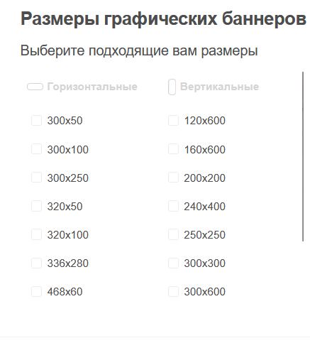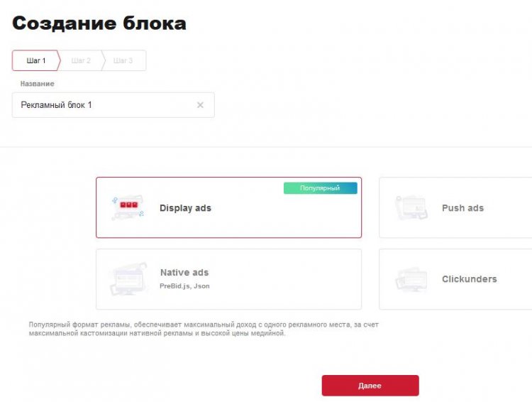 После модерации и апрува можно выбрать и настроить рекламный блок с нужным форматом.