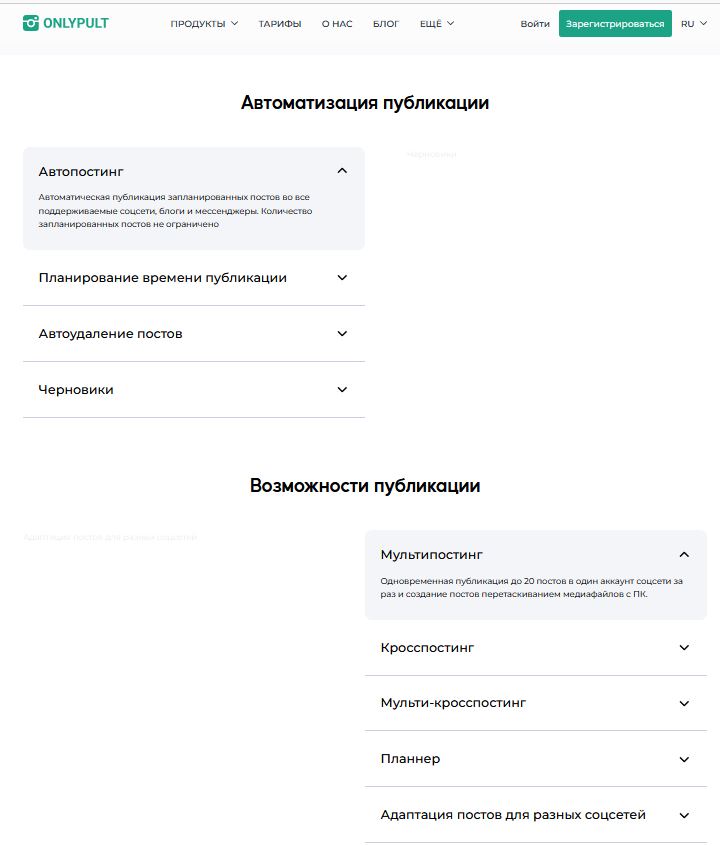 Сервис автопостинга Onlypult включает в себя и множество решений для буржунета.