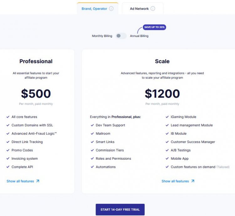 Простая визуально и технически для обеих сторон, Affise остается очень привлекательной. За пальму первенства по популярности может побороться разве что Post Affiliate Pro. Но сравнивать эти решения нельзя. Слишком они разные по реализации.