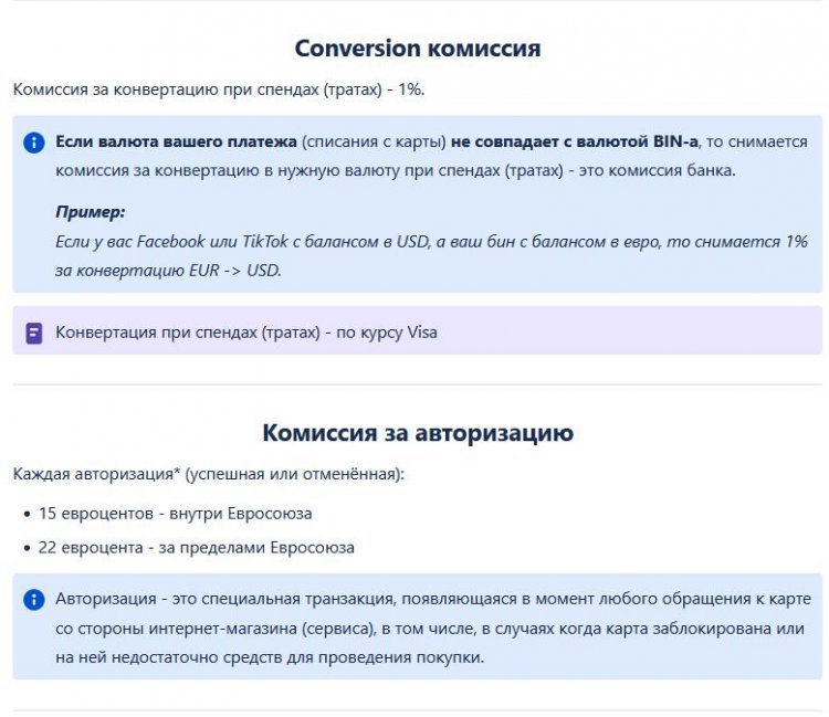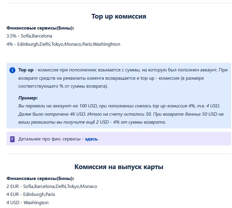 Ниже перечислены все комиссии, которые берет сервис за свои услуги.