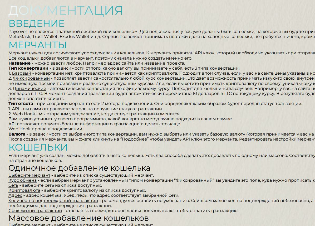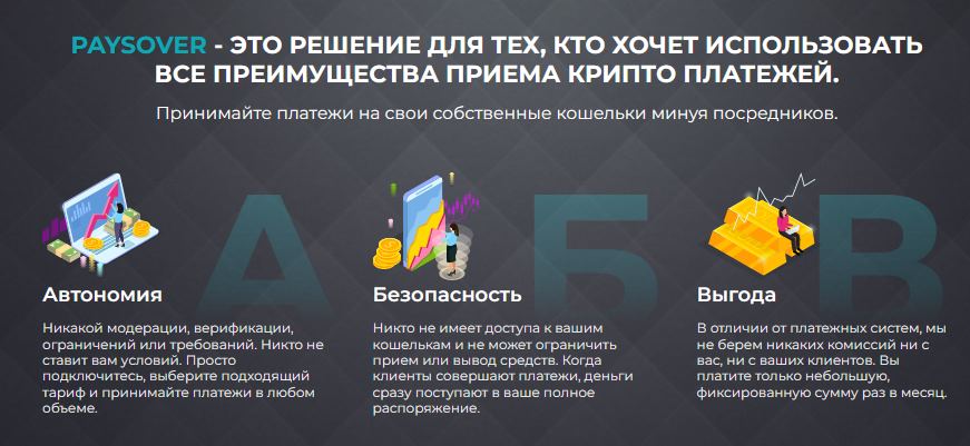 Прием платежей на сайте в крипте сразу на свои горячие и холодные кошельки без комиссии и верификации KYC с подключением по API – вот такой боекомплект предлагает сервис некастодиальных криптоплатежей Paysover.