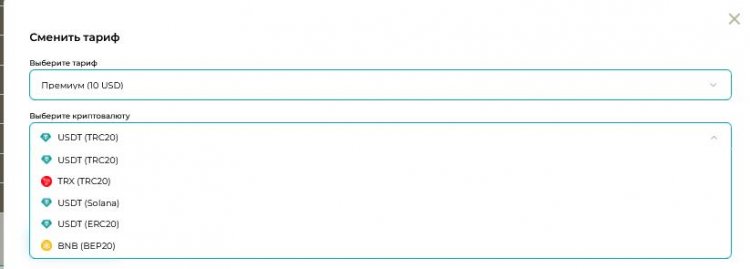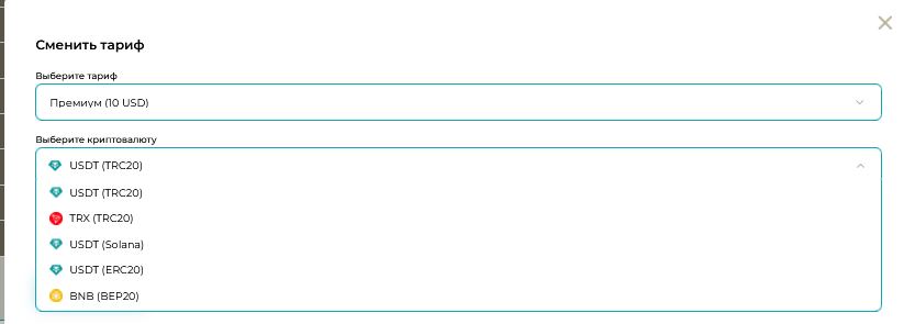 Выбираете нужный вариант и удобную для оплаты крипту.