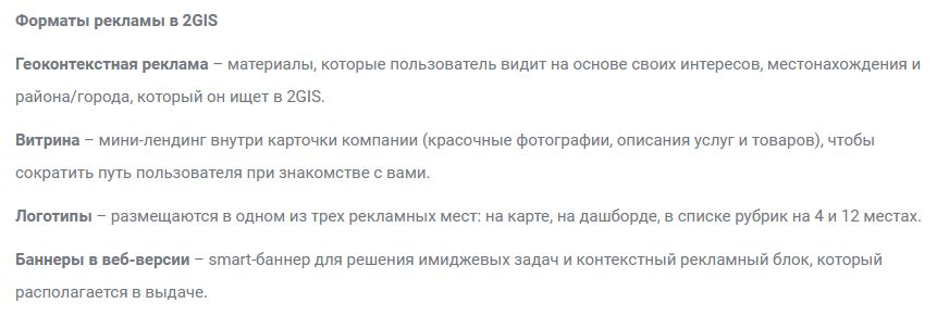 Какие форматы размещения предусмотрены в 2ГИС (2GIS)?