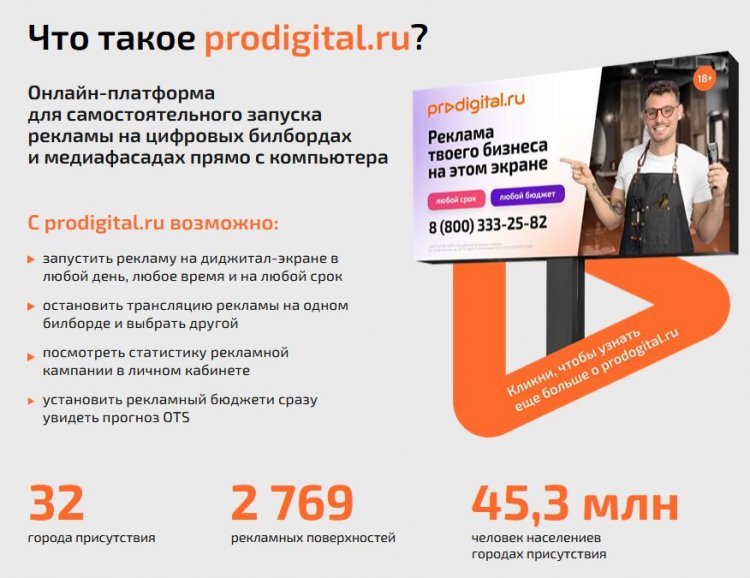 Рекламная сеть Click открыла возможность продвижения ваших услуг на площадке 2ГИС (2GIS), Авито, а также запуск рекламы в оффлайне на цифровых табло в 32 городах России через Prodigital.