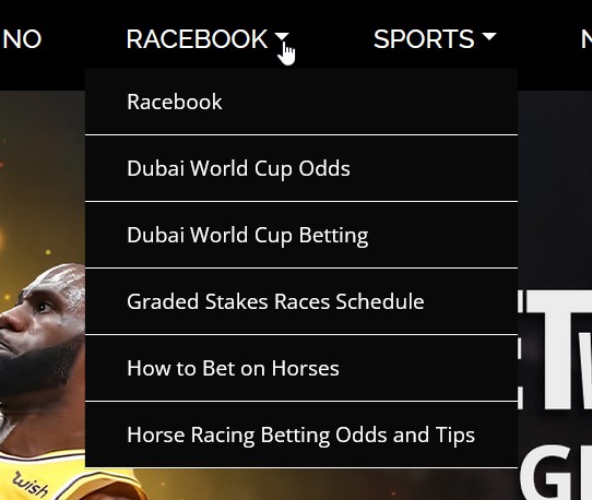 В отличие от первых двух брендов здесь визуальный акцент сделан – прямо в меню – на скачки.