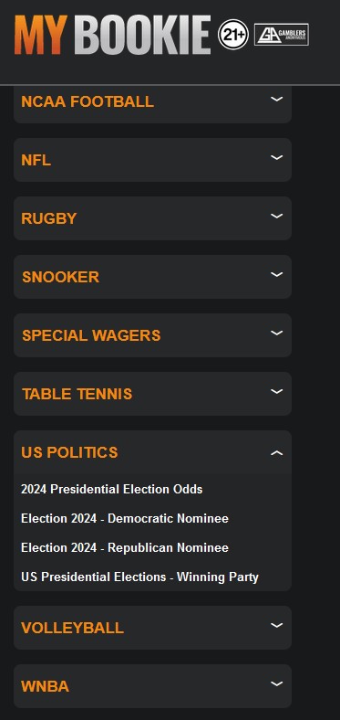 Первый из брендов уже упоминал ранее в одном из обзоров беттинг партнерок касательно ставок на политические события. MyBookie официально принимает такие ставки.