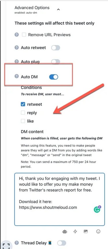 В отличие от других спамерских опций, которые позволяли вам отправлять автоматические DM всем подряд, эта функция основана на взаимодействии. В этой функции вы сами решаете, отправлять ли автоматическое DM пользователям, которые поставили лайк, ретвитнули или прокомментировали ваш недавний твит.