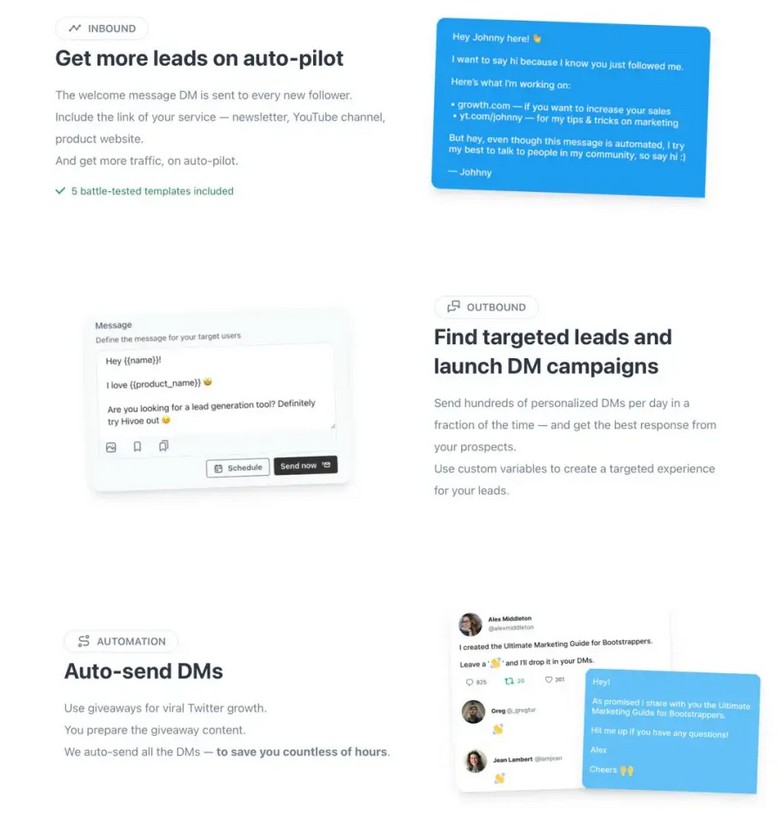 Вы можете использовать этот инструмент для отправки автоматических DM каждому новому последователю, рекламируя свои услуги, предложения, продукты и многое другое.