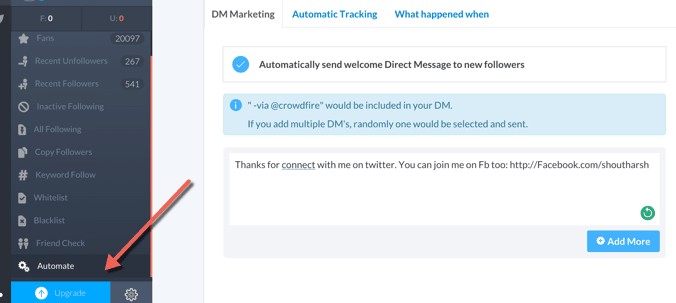 CrowdFire будет интересен вам, если вы хотите отправлять автоматические приветственные сообщения.