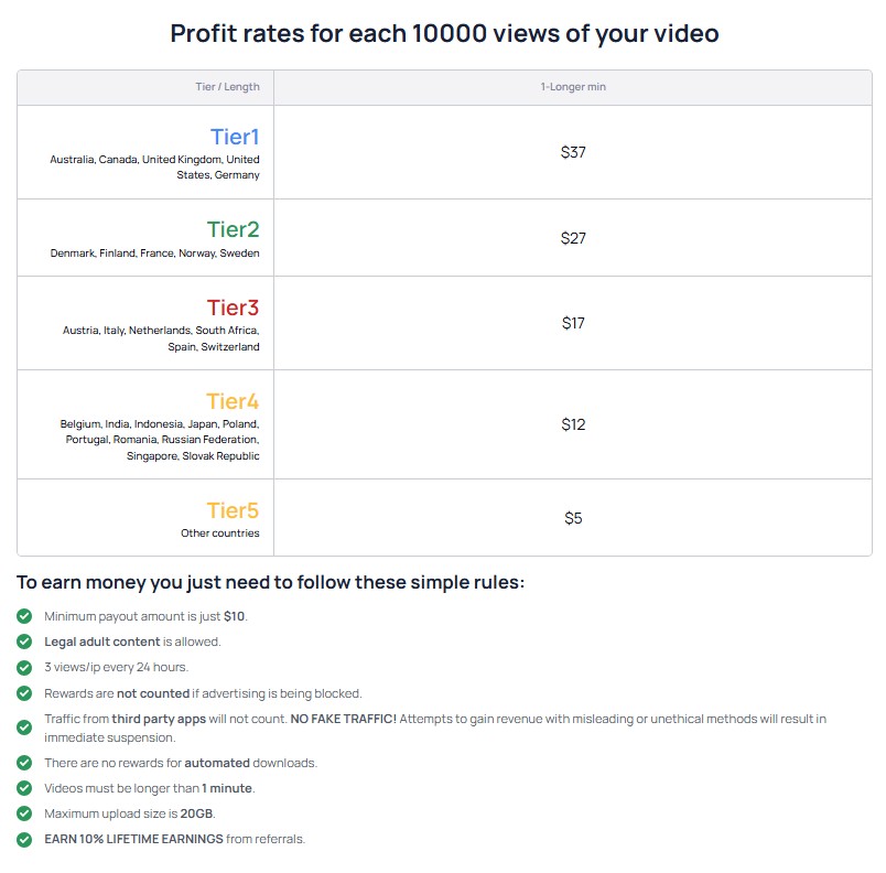 Оплата – до 33 долларов за 10 000 просмотров.