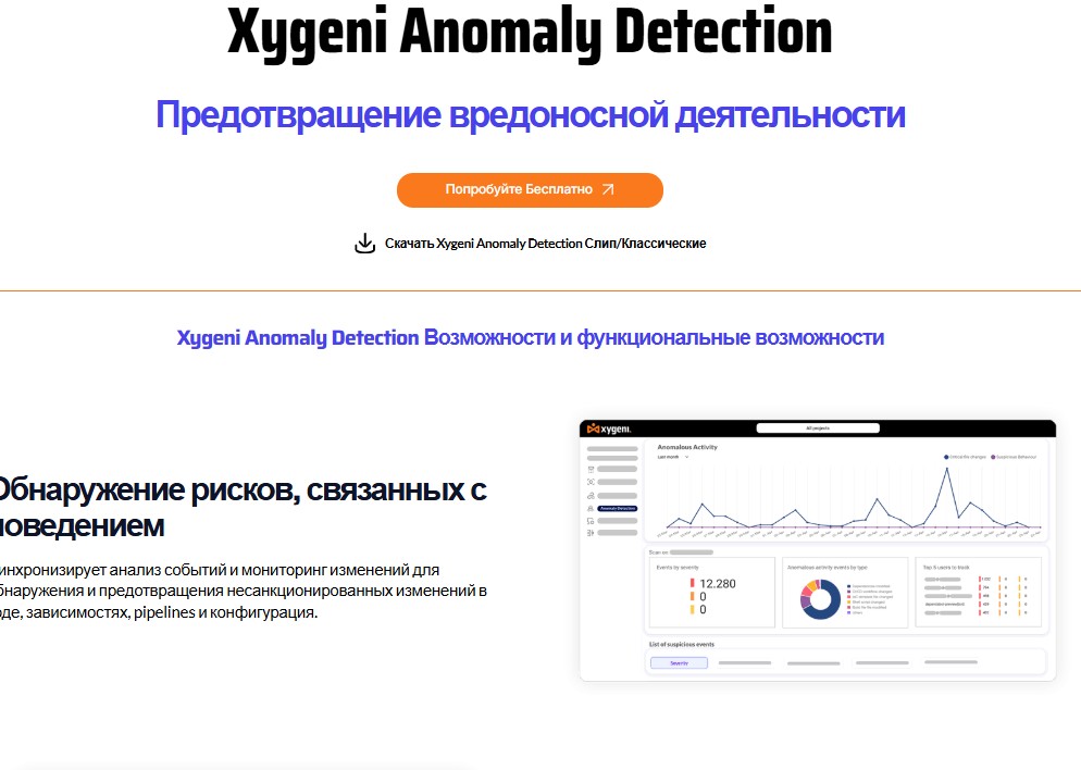 3. Xygeni: обнаруживает риски и аномалии в реальном времени.