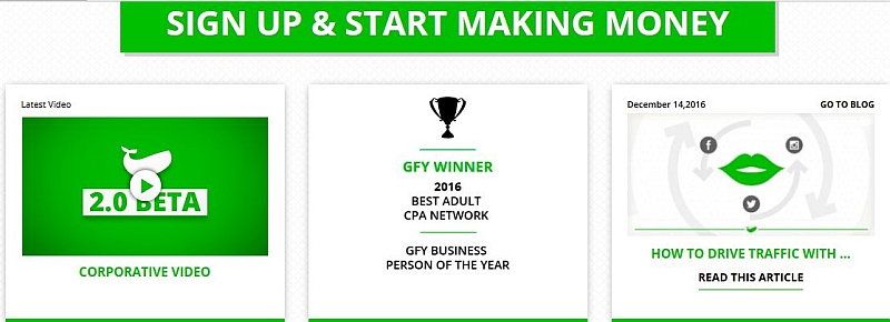 Теперь надпись «Best Adult CPA Network» красуется на главной странице партнерки, которая включает в себя порядка 500 офферов и предложений различных топовых спонсоров.