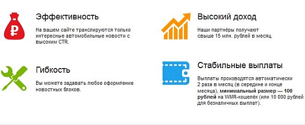 Принимают для заработка автомобильные сайты с посещаемостью от 100 хостов.