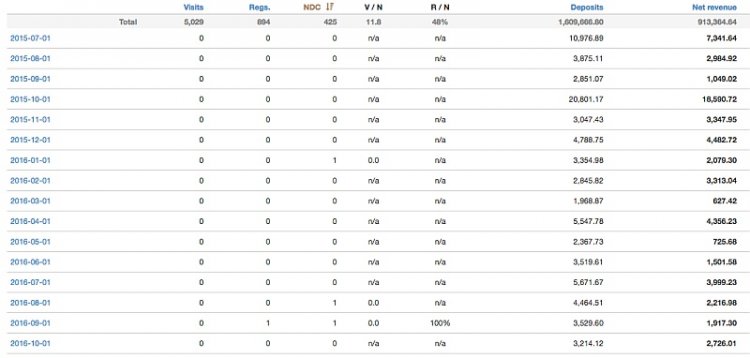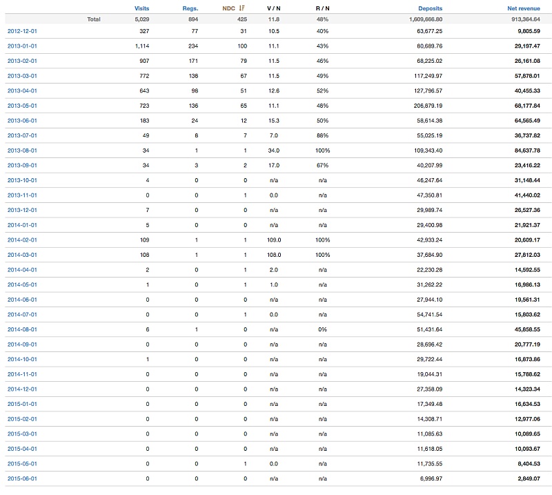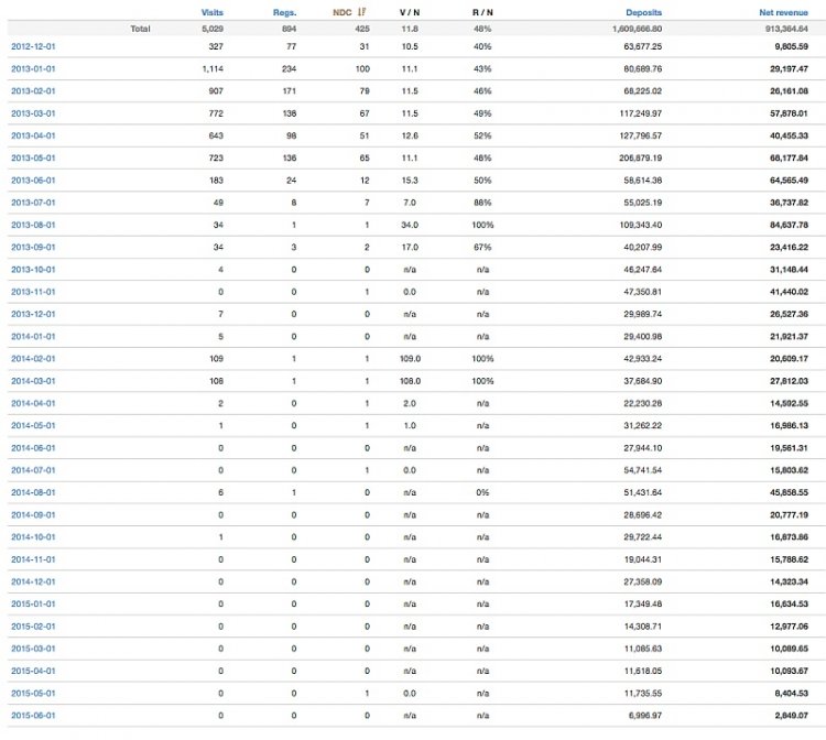 Чтобы не быть голословным, как раз статистика по одному из таких игроков, отчисления с которого уже идут более 2 лет, с 2014 года.