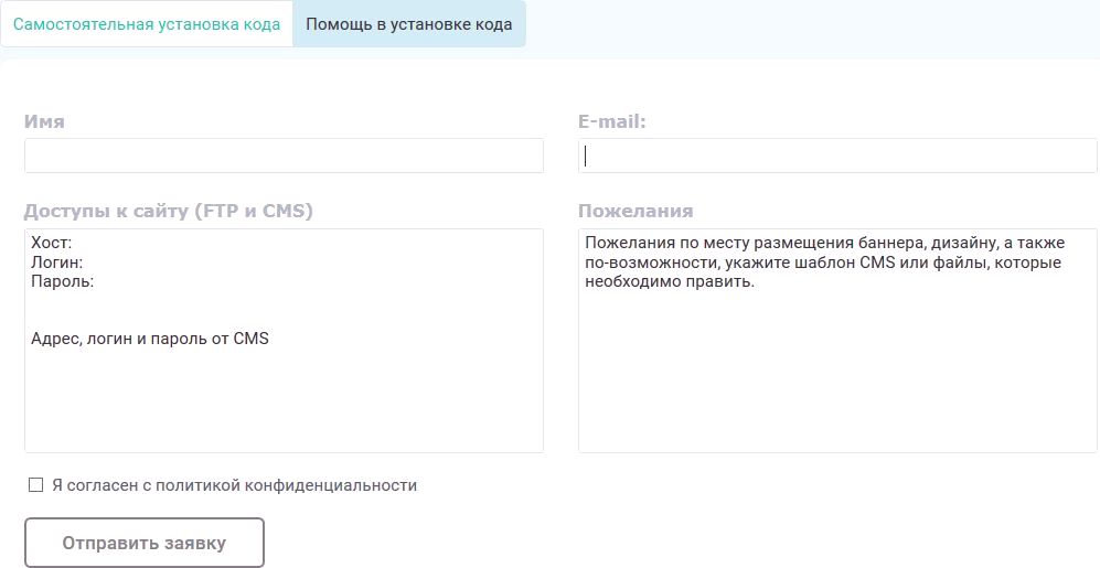 Если затрудняетесь с установкой, можно прибегнуть к помощи спецов самой системы, предоставив им доступы к своему сайту.