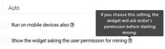 Интересна данная опция, которую вы видите на скрине в виде всплывающей подсказки. Она позволяет работать в «silent» режиме на компьютерах пользователей, то есть без ведома последних. Разумеется, профит в таком случае будет многократно выше, чем если вы предоставите им возможность соглашаться или не соглашаться с тем, что их комп будут юзать.