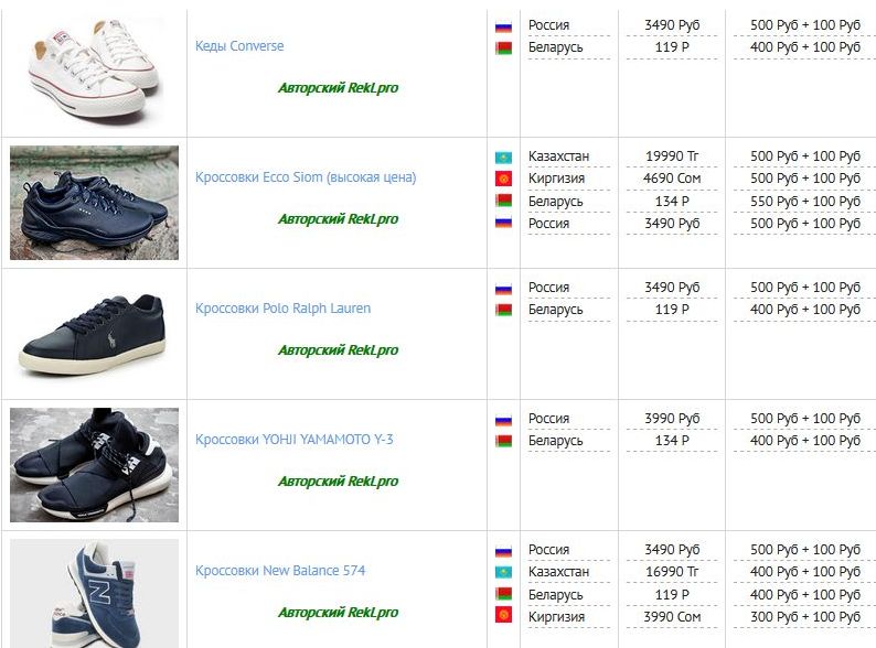 Товарный арбитраж трафика возможен и в узких нишах, например, вы можете предлагать кроссовки и ботинки популярных марок с оплатой за лиды из CPA партнерок.