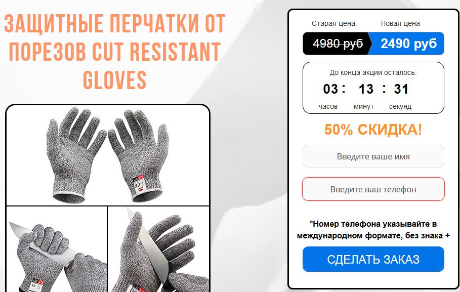 Защитные перчатки от порезов Cut Resistant Gloves